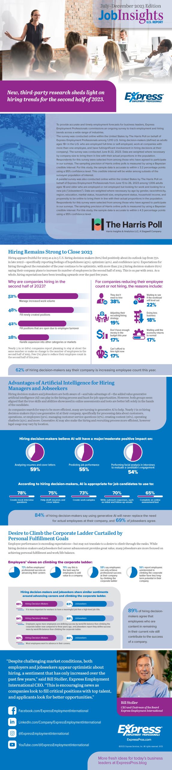 To provide accurate and timely employment forecasts for business leaders, Express Employment Professionals commissions an ongoing survey to track employment and hiring trends across a wide range of industries. The survey was conducted online within the U.S. by The Harris Poll on behalf of Express among 1,010 U.S. hiring decision-makers from June 8 to 22, 2023.