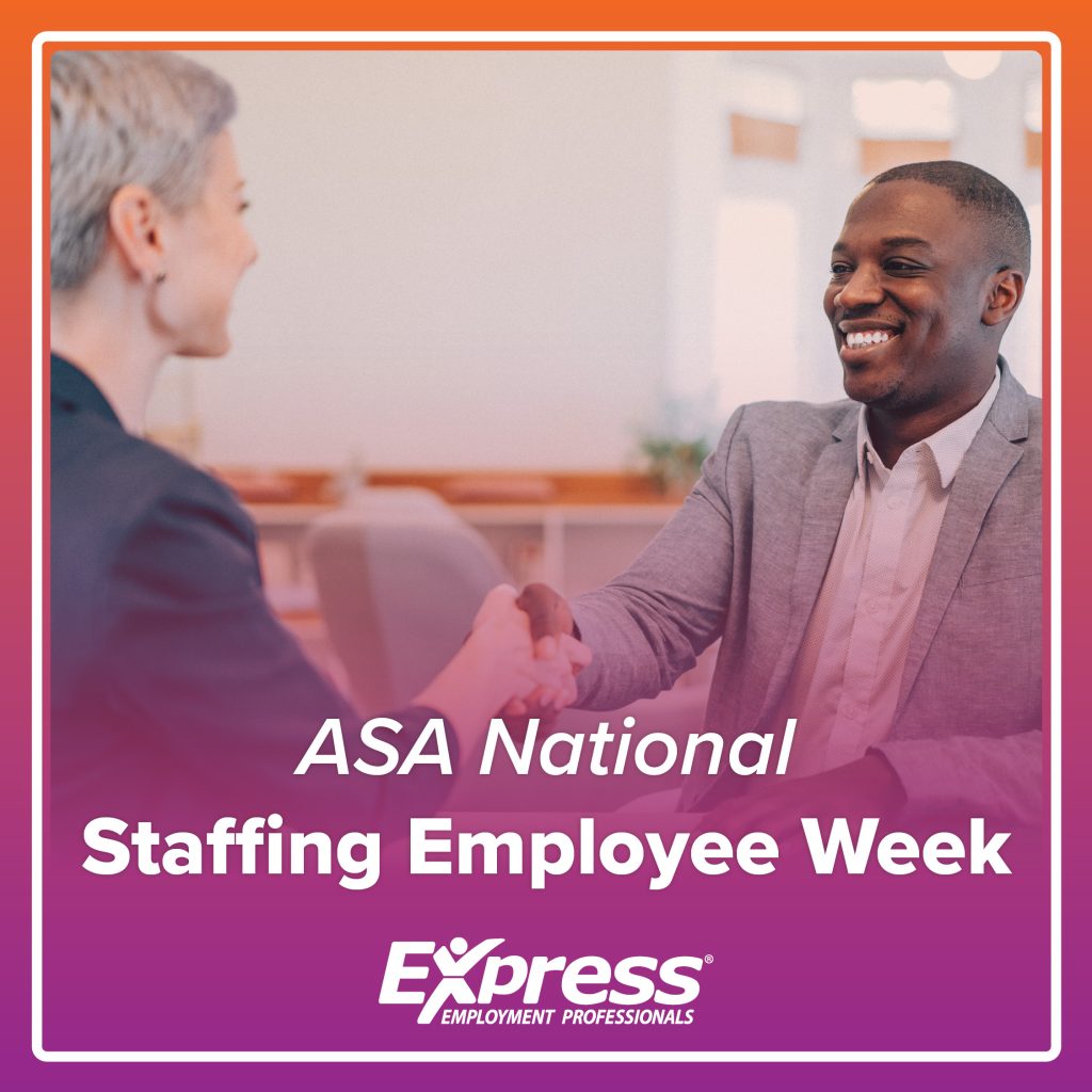 National Staffing Employee Week recognizes the millions of temporary and contract employees working for U.S. staffing agencies. This year, the commemorative week is Sept. 11-17, and there isn’t a better time to celebrate Express Employment Professionals’ associates. Thank you to all our talented associates working to achieve excellence in industries including industrial, logistics, professional, administrative, healthcare, and many others!